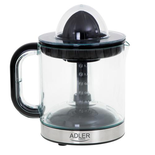 Tea with lemon, grapefruit juice for breakfast or squeezing orange juice to cook the duck in oranges from now on will not be associated with a sore hand and juice stains on the countertop and kitchen floor. The device consists of a container, a lid, a pulp sieve separating the juice from the pulp and two replaceable press cones. The strainer guarantees a liquid without any particles or fruit seeds floating in it. On the other hand, the cones make it easier to squeeze the juice from smaller and larger citrus fruits, which is especially important if you are fans of grapefruit juices. The juicer is equipped with an automatic start/stop function and rotation to the right and left, which allows you to conveniently control the operation of the device and allows you to produce much more juice than with traditional manual methods. The retractable cord makes it easy to store the device in a cabinet, so it does not take up much space.Adler AD 4012. Product type: Hand juicer, Product colour: Black, Juice container capacity: 1.2 L. Housing material: Glass. Weight: 750 g. Package width: 165 mm, Package depth: 230 mm, Package weight: 900 g