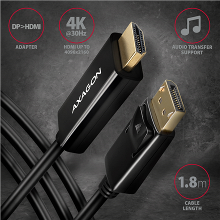 AXAGON RVD-HI14C2 Active DisplayPort to HDMI Cable 1.8m, Black