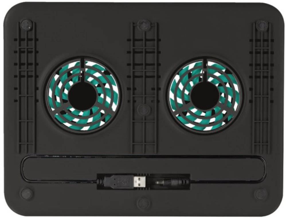 Laptop Cooling Stand / PadBrand: TrustModel: CycloneColor: Black (with Blue LED fans)Fan Configuration: 2x 125mm cooling fans with blue LED illuminationPower Source: USB Powered (connects to laptop's USB port)Extra USB Port: Yes, includes 1 additional USB portCompatibility: Designed for laptops up to 17.3 inchesFeatures:Adjustable tilt angle (multiple height settings)Ergonomic design for improved postureNon-slip rubber feet and surface stopper for laptop stabilityQuiet fan operationOn/off switch for fans (check specific versions, but often standard)Material: Metal mesh top, durable plastic frameFan Speed: Typically around 1000 RPM (check specific iteration for exact number)Noise Level: Designed for low noise (e.g., < 25 dBA)