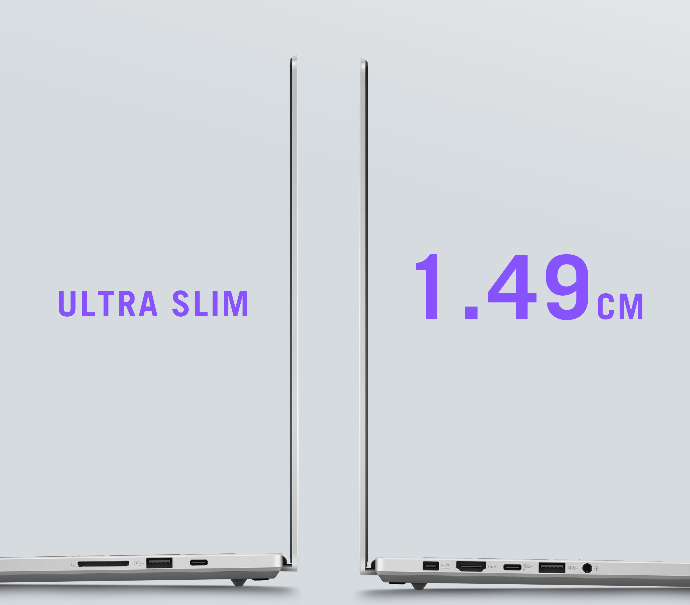 - Size and weight: 1.85 kg, 354 x 246 x 14.9 mm
