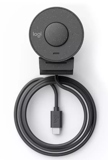 The Logitech Brio 305 is a 1080p Full HD webcam designed for better hybrid meetings, compatible with Windows, macOS, and Chrome OS. It features a 2MP CMOS sensor with a 70° diagonal field of view, automatic light correction (RightLight 2), and a fixed focus. Equipped with a unique digital microphone that includes noise reduction technology to ensure clear audio transmission. A built-in privacy shutter allows users to easily block the camera lens for enhanced privacy, with an indicator light showing camera status. This webcam connects via USB-C (1.5m cable length) and is built with a minimum of 48% recycled plastic, reflecting a focus on sustainability.