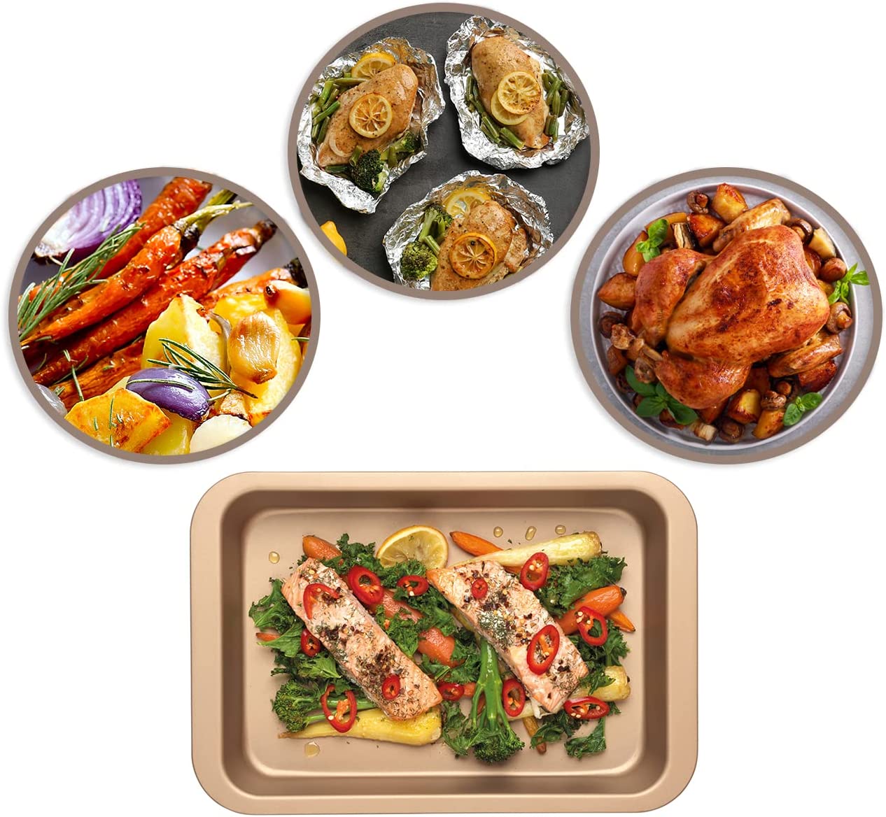 Russell Hobbs RH01689GEU7 Opulence 36cm roaster gold Description Great for cooking a range of delicious meals and treats, the Russell Hobbs Opulence 36 cm Roaster is a staple for any cookware set. Created from carbon steel, the roaster features a non-stick surface so you can cook with confidence and release food without hassle. Made for your convenience, the roaster can be easily washed in warm soapy water and stored away in a drawer or cupboard. Offering long lasting quality, the tray is strong and durable ensuring it will withstand the demands of a busy family kitchen. Combining practicality with style, the roaster has a beautiful gold design which will look great and suit any kitchen aesthetic. Color: Gold Material: Carbon Steel Finish Type: Non Stick Dimensions (L x W x H): 36.5 x 25.5 x 5 centimetres Weight: 0.54 Kilograms