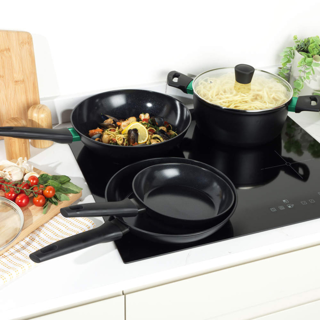 This Russell Hobbs Verde Thermocollar 28 cm Stockpot is crafted from recycled forged aluminium, ideal for environmentally conscious homes. With intelligent heat indicator technology,the collar turns green when the optimum cooking temperature is reached for better results. For toxin-free cooking, this pot has a healthy ceramic non-stick coating that is PFAS-free and does not contain lead or cadmium. Complete with a glass lid, this cooking pot can be used on all hob types, including induction, and is incredibly easy to clean after use. Finished with 2 soft-touch handles that stay cool during use for added comfort and safety, this stockpot is great for soups and chillis.