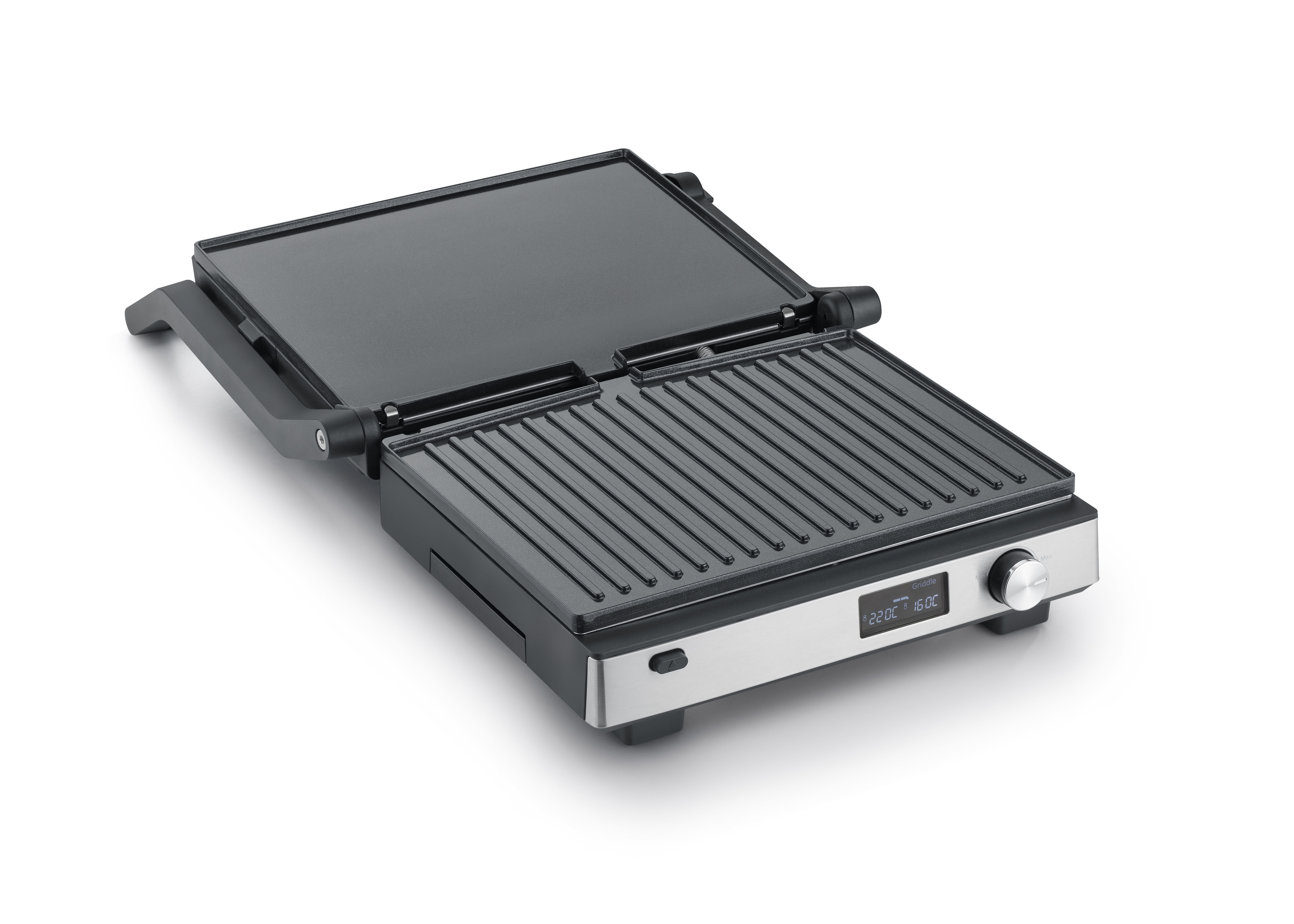3-in-1 combination Versatile multi-contact grill. Three interchangeable plates for preparing meat, burgers, panini, sandwiches and even baking Belgian waffles Optimum grilling and baking results thanks to 220 °C and preset automatic programs High-quality ceramic coating for scratch-resistant and healthy grilling enjoyment XL grilling surface (29 x 23 cm) for up to four burger patties, sandwiches or Belgian waffles Easy to clean Dishwasher-safe plates for effortless cleaning