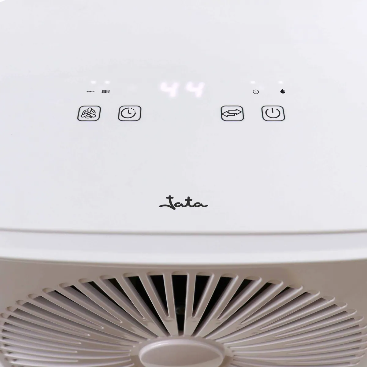 Dehumidifier Tank 2 L 2 speeds Area of action: 15 m2 42 dB Manufacturer Jata Absorbed humidity (l/24h) 12 Power (W) 210 Water tank capacity (l) 2 Air flow (m³ / h) 90 Noise level (dB) 42 Timer Yes Additional functions Defrost Dimensions 27 x 20.5 x 40.8 Weight (kg) 10.5 Color White