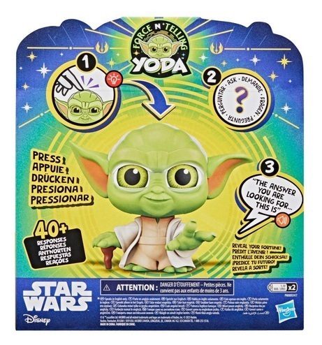 Ennustuksia kertova Yoda antaa yli 40 erilaista vastausta, ja sen silmiin syttyvät valot. Voit myös muuttaa käsin Yodan kulmakarvoja asentoa ja tehdä sille hauskoja ilmeitä. Ennustava Yoda-hahmo on loistava lahjaidea kaikille Star Wars -faneille lapsista aikuisiin sekä hauska viihdyke koko perheen peli-iltaan.
