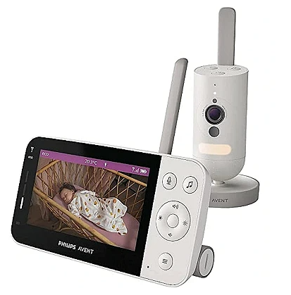 FeaturesConnection mode: direct connection (between devices) and Wi-FiMobile connection range: unlimited, internet connection requiredParent device / infant device range: up to 400 meters outdoors and 50 meters indoorsInfant device camera Resolution: Full HD 1080pOlder device screen size: 4 ' 3 inch color liquid crystal displayOlder device resolution: 480x272Night vision: yes, automaticZoom: Yes, digital zoom and panRoom thermometer: yes, including warningNight light: yes, including timerTalk: Yes, talk mode (speaking and listening at the same time)Lullabies, soothing and background sounds: yes, including a timerRecord individual sounds: yes with the appPhone application( app): Philips Avent Baby Monitor+Operating system (app): iOS 11 and above and Android 6 and above Comfort of useVideo mode: yesSound mode only: YesECO mode: Yes, energy saving modePrivacy mode: yes, connection only through parent device and Child deviceBackground monitoring (app only): Yes, the child is audible while the phone is locked or other apps are usedWarnings: Yes, low battery; lost connection;temperature; sound; motion detectionWall-mounted: Yes