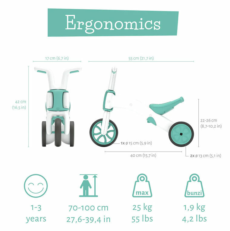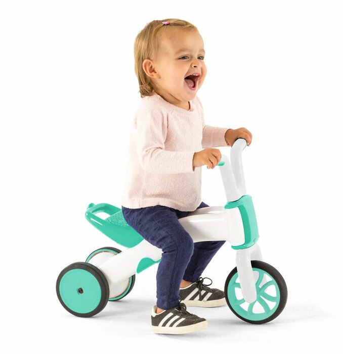 CHILLAFISH CPBN03MIN is an innovative 2-in-1 balance trike and bike, designed for children aged 1 to 3 years. This model helps toddlers gradually develop balance and coordination skills by transitioning from a stable three-wheel mode to a more challenging two-wheel setup. Key features: Convertible from trike to bike: Easily switches between modes without tools, allowing children to progress at their own pace. Adjustable seat: Seat height adjusts from 22 cm in trike mode to 25 cm in bike mode, ensuring comfort as your child grows. Silent, non-marking wheels: TPE rubber tires are floor-friendly and suitable for both indoor and outdoor use. Lightweight and durable: Made from high-quality ABS plastic, making it easy to carry and built to last. Parent-friendly features: Includes a built-in carry handle and a hidden storage compartment under the seat for small essentials.