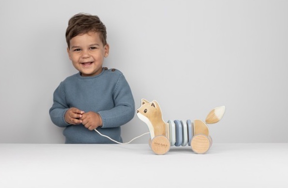 Tukevasta puusta valmistettu ja sinisillä renkailla koristeltu vetolelukettu ei tarjoa vain loputonta viihdykettä, vaan se myös edistää kävelyä ja parantaa motoristen taitojen kehittymistä. Tuote on valmistettu FSC-puusta.