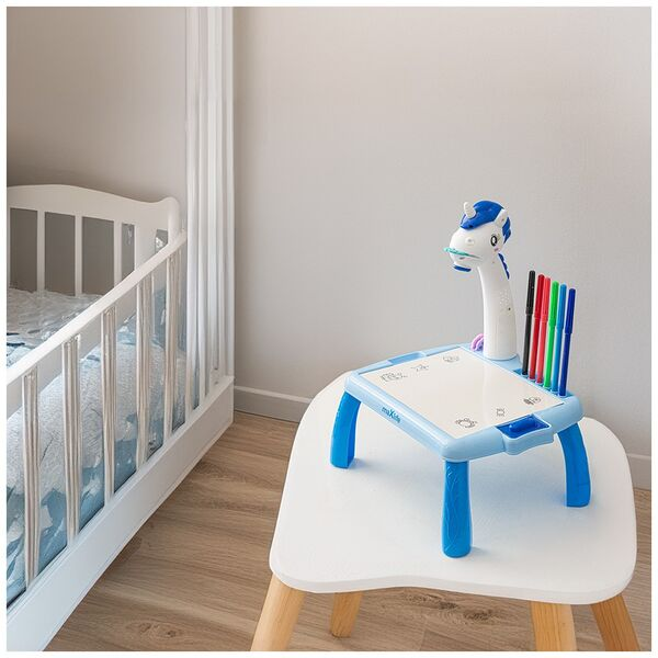 Maxlife projektors ar zīmēšanas galdu – zils6 projection discs with 48 images (drawings + photos)Includes 12 markers, eraser, and projector strapFoldable design, can be used as flashlightAdjustable focus for sharp image projectionStorage compartments for discs and markersEasy-to-clean drawing surfacePowered by 2× AA batteries (not included)Recommended age: 3+Product dimensions: ~0.30 × 0.29 × 0.09 mNet weight: ~0.65 kgGross weight: ~0.9 kgPackage dimensions: approx. 0.32 × 0.30 × 0.10 m
