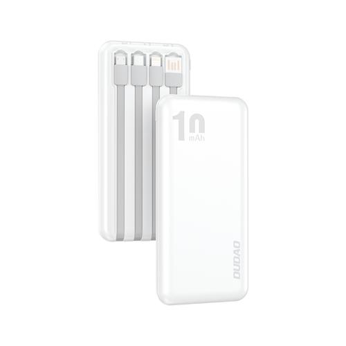 Dudao - Powerbank - 10000 mAh - 10 Watt - 2A - 4 output-cables (USB-A x1, lightning x1, USB-C x1, USB Micro x1) - 4x cables included - White