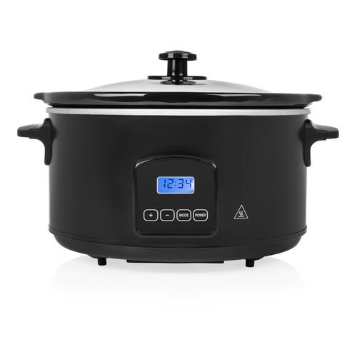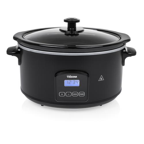 Tristar slowcooker, removable inner pan, lid, manualTristar VS-3920 Digital Slowcooker. Capacity: 4.5 L, Product colour: Black, Control type: Touch. Power consumption (typical): 210 W, AC input voltage: 230 V, AC input frequency: 50 - 60 Hz. Weight: 5.05 kg. Package width: 360 mm, Package depth: 230 mm, Package height: 360 mm. Doesn't contain: Bisphenol A (BPA)
