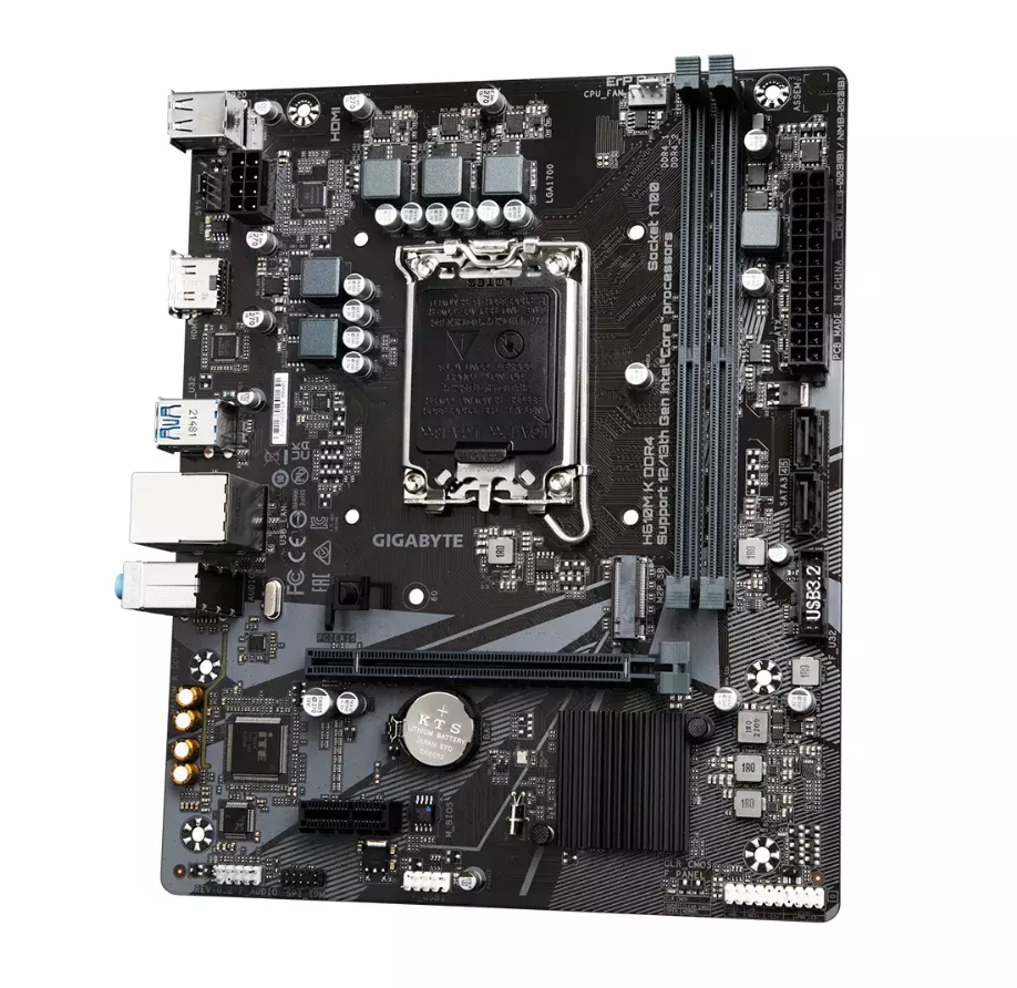 The Gigabyte H610M K DDR4 motherboard is designed for home, office, and budget gaming PCs using Intel 12th and 13th Gen processors (Alder Lake & Raptor Lake). The Micro ATX form factor fits compact cases and supports DDR4 memory up to 64GB at up to 3200 MHz, fast storage via M.2 NVMe, and graphics cards via PCIe 4.0 x16. It features USB ports, Gigabit LAN, high-quality 7.1 channel audio, and extensive fan control and protection functions.