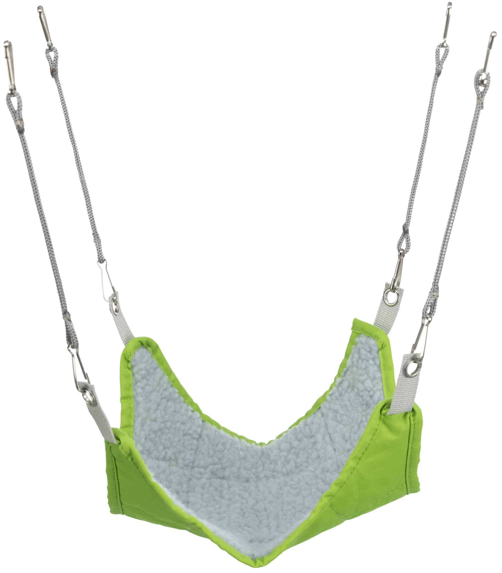 Guļvieta grauzējiem - TRIXIE Hammock for mice/hamster Izgatavota no neilona un aitādas imitācijas, poliestera pārklājums. Guļvieta ir iekarināma būrī. Var mazgāt ar rokām + 30°C ūdenī. Izmēri: 18*18 cm