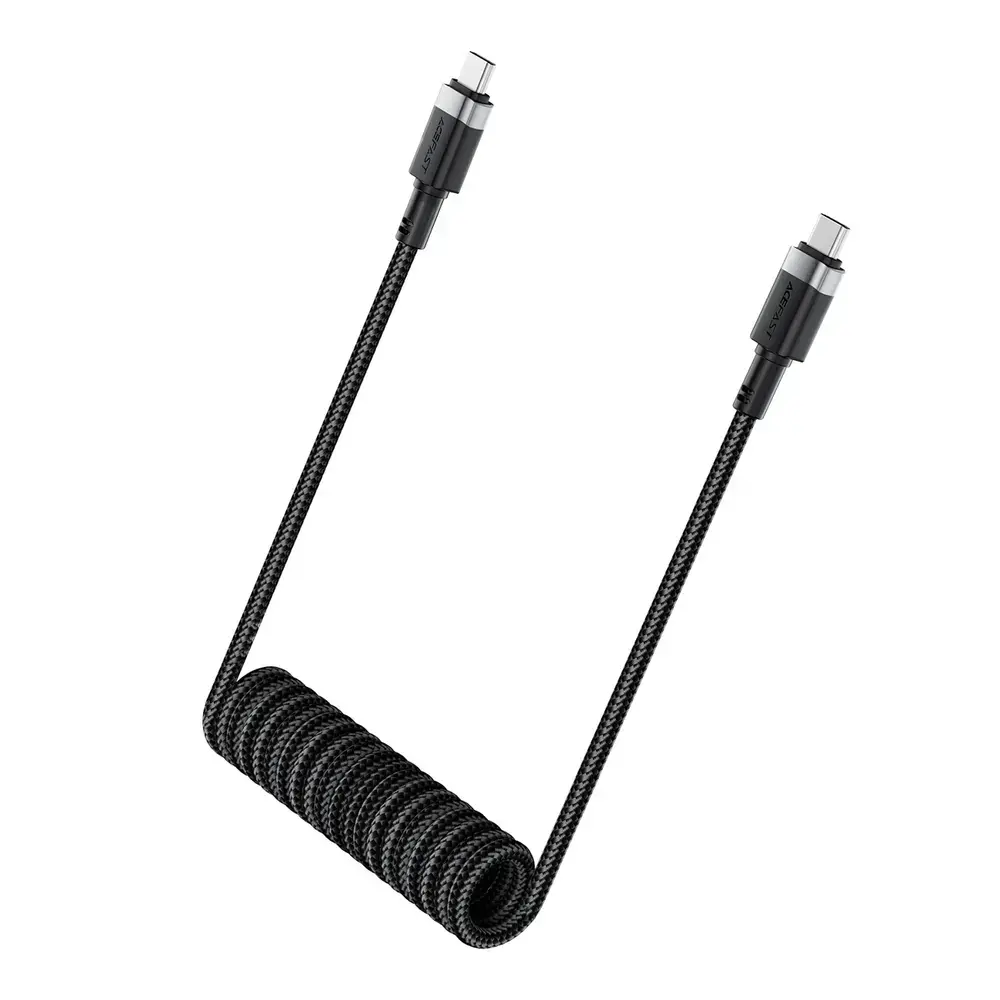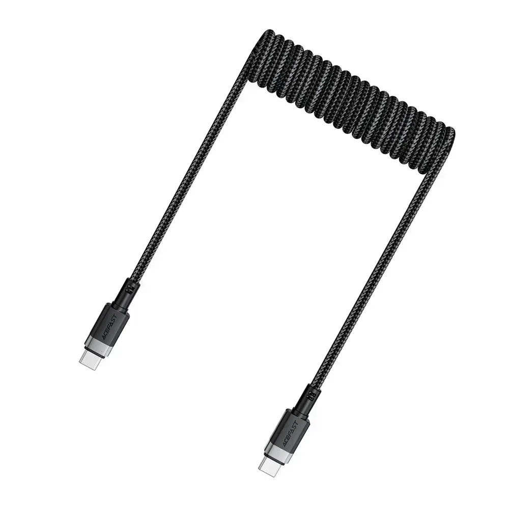 Acefast C14-03 USB-C to USB-C Spring Cable, 480Mb/s, 3A, 1.2m - Black