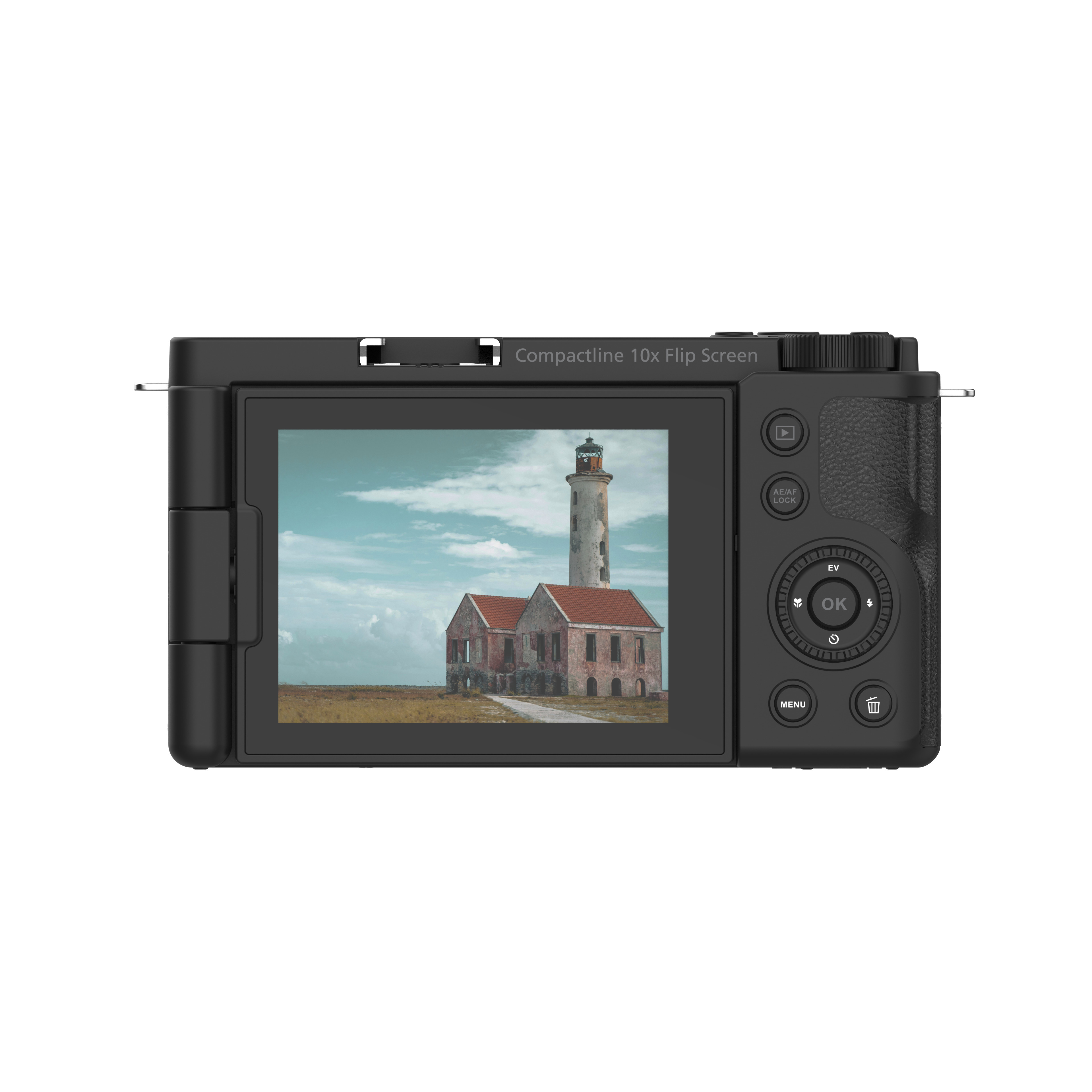 Rollei Compactline 10x Flip on monipuolinen digikamera, joka sopii niin matkailuun kuin arkikäyttöön. Sen 64 megapikselin tarkkuus takaa terävät valokuvat, ja 10-kertainen optinen zoom tuo kaukana olevat kohteet lähelle ilman laadun heikkenemistä. Kameran 270° kääntyvä näyttö helpottaa selfieiden ja vlogien kuvaamista, ja mikrofoniliitännän sekä cold shoe -jalustan ansiosta äänenlaatuun ja lisävarusteiden kiinnitykseen on panostettu. 4K-videotallennus mahdollistaa yksityiskohtaiset videot, jotka tallentavat tärkeät hetket tarkasti.