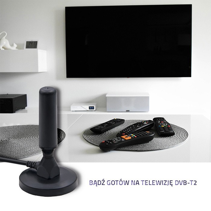 | Description | The DVB-T2 antenna has been designed to support the new TV standard at home, in the office or when traveling by car or camper. Our solution offers: - support for the DVB-T2 standard without the need to replace the TV with |