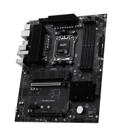 MSI PRO B850-S WIFI6E is a reliable ATX motherboard for workstations and home PCs. It supports Intel 12th and 13th-generation processors, high-speed DDR5 memory, and features built-in Wi-Fi 6E for stable connectivity. The board provides multiple expansion slots, quality audio, and efficient cooling for stable system performance. Specifications: Form factor: ATX Chipset: Intel B850 CPU support: Intel 12th/13th generation Memory: DDR5 up to 128 GB Expansion slots: PCIe 5.0 x16, PCIe x1 Connectivity: Ethernet, Wi-Fi 6E, Bluetooth 5.3 Audio: 7.1-channel HD Audio Ports: USB 3.2, USB-C, HDMI, DisplayPort