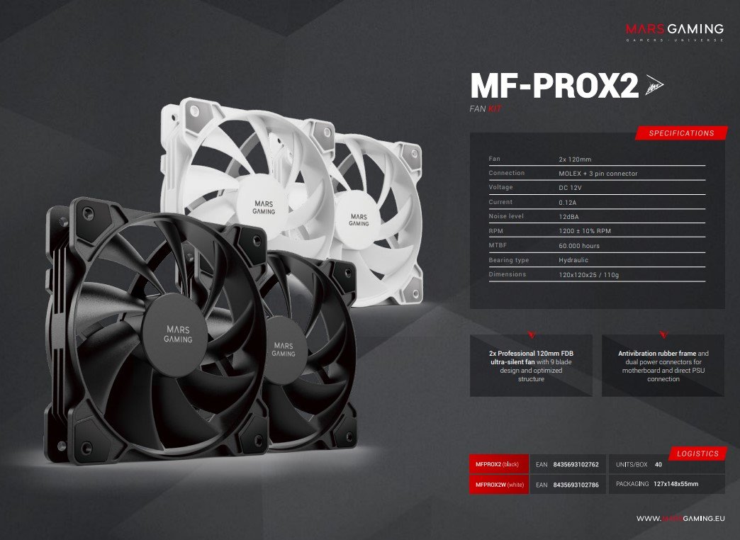 Mars Gaming MFPROX2W 2x 120mm PC Case Fan