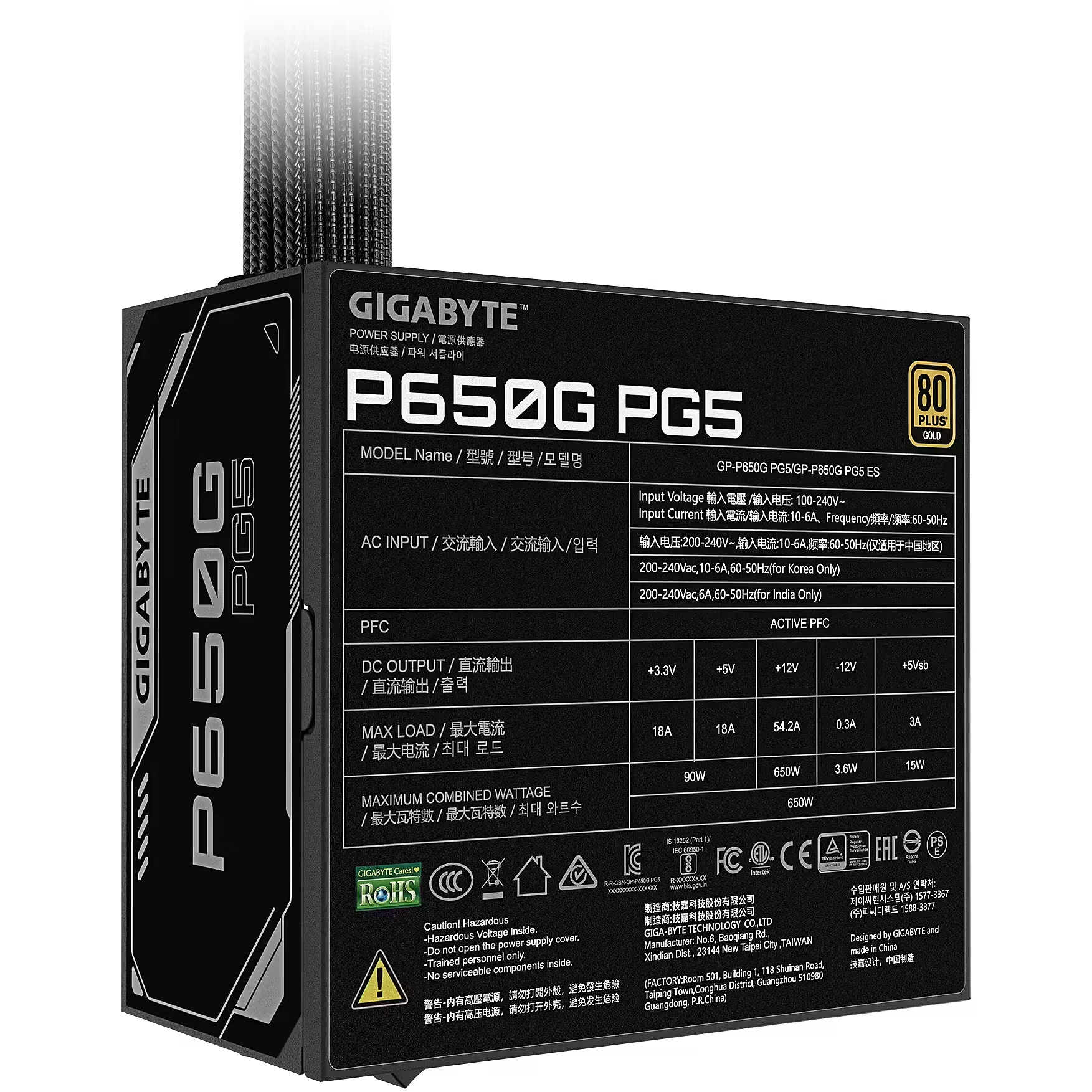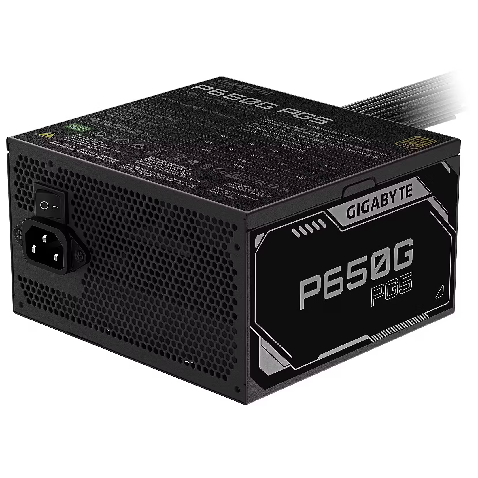 Manufacturer:GigabyteModel Name:GP-P650G PG5Type:Power Supply Unit (PSU)Wattage:650 WEfficiency Certification:80 PLUS GoldForm Factor:ATXModularity:Full ModularPCIe 5.0 Support:Yes (Native 16-pin 12VHPWR connector)1ATX Version:ATX 3.0 ReadyCooling:120mm Hydraulic Bearing (HYB) Fan2Capacitors:100% Japanese CapacitorsSafety Protections:OVP, OPP, SCP, UVP, OCP, OTP3