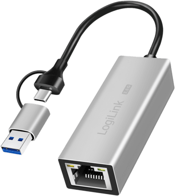 The Logilink 2.5G network adapter provides a stable and powerful connection for demanding applications such as 4K video streaming and online gaming. The broad device compatibility ensures flexible use.Features Supports a network speed of up to 2500 Mbps, backwards compatible with 10/100/1000 MbpsConnection: USB-A or USB-C (2-in-1 connector). Compatible with Thunderbolt 3/4Supports patch and crossover cables, automatic detection and switchingComplies with the IEEE 802.3/802.3u/802.3ab/802.az/802.3bzBandwidth: 10/100/1000/2500 MBit/s with Auto MDIXSupports duplex and VLAN taggingSupports Windows, Mac OS, iOS, Chrome OS, Linux and Android Knox 5.0 or higherTechnical data Weight 33 gManufacturer Logilink Dimensions (W x H x D) 24 x 17 x 60 mmProduct type Adapter Product colour silver