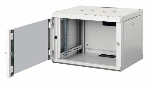 Introducing the Equip Eco Mount Wall Mount Cabinets—designed for seamless integration and efficient management of network components, emphasizing sophisticated cable organization. Constructed from robust 1.5 mm thick steel sheets, these cabinets are paragons of durability and security, ensuring the protection of your valuable equipment. Choose from elegant shades of grey (RAL 7035) and black (RAL 9005) to enhance both functionality and aesthetics. Available in 10“ or 19“ variants, the Equip Eco Mount series offers a smooth experience exclusively for wall-mounted configurations. The door design allows easy reorientation from right to left to suit your spatial requirements. To maintain an optimal operational environment, the cabinets are equipped with integrated ventilation slots at the top.Our design prioritizes effective cable management. The top and bottom each have a cable entry covered with a removable plastic cover for easy cable routing and protection.