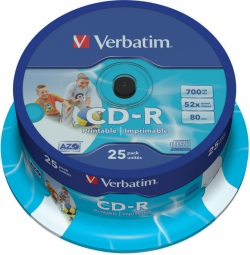 Verbatim Matricas CD-R AZO 700MB 1x-52x Laiendatav trükitav pind, ID-bränd, 25 tk spindlis (43439V)