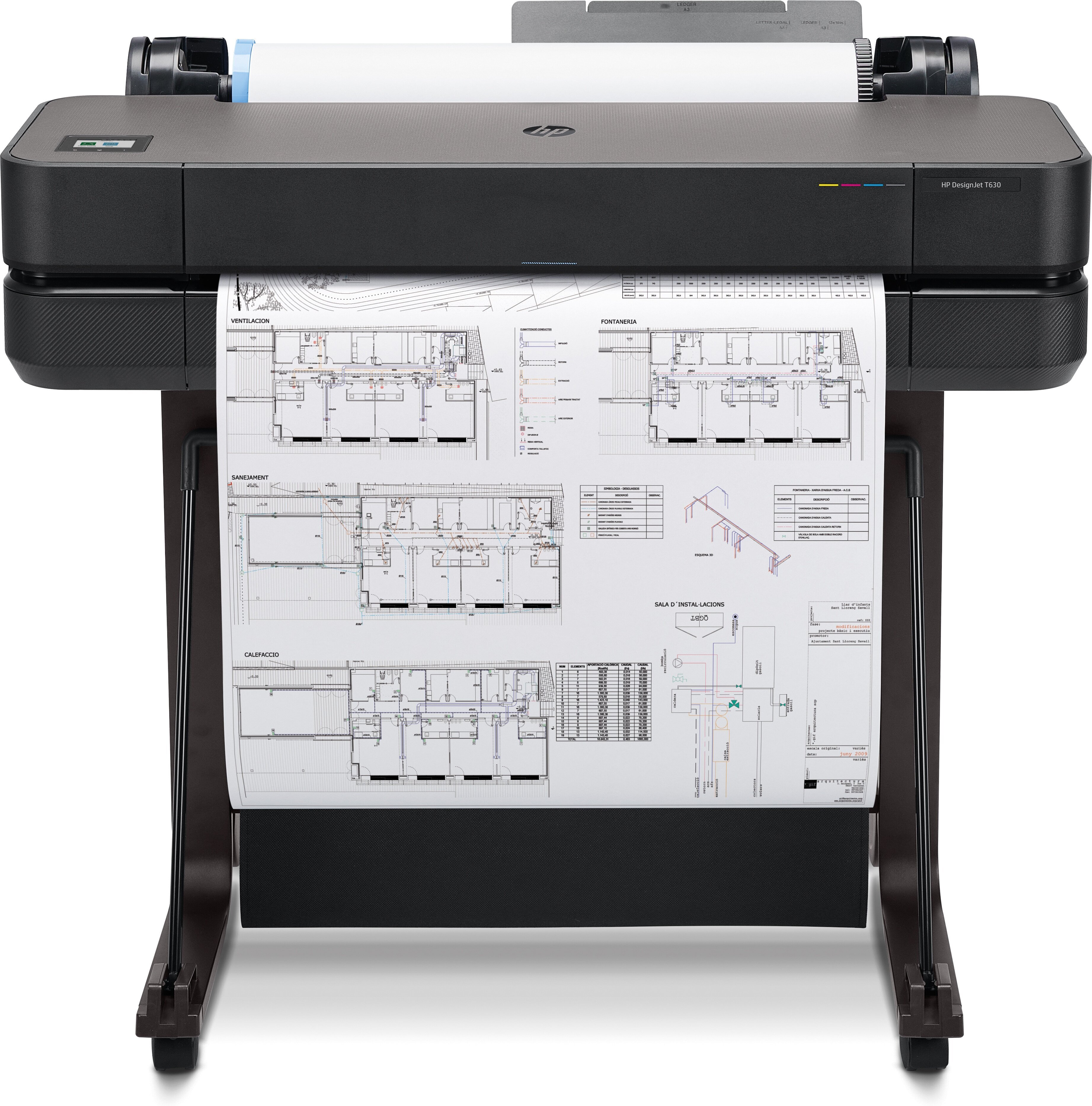 - Pakendi sisu: HP DesignJet T630 24-tolline printer, printeri alus, automaatne paberi söötja, printpeak, startertindikassetid, rull, kiire juhend, installiplakat, toitekaabel