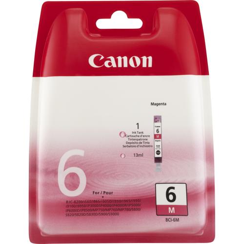 A magenta ink used for printing documents and photos on a mixture of media types. This ink cartridge allows you to print up to 430 A4 (Printing ISO/IEC 24711†) pages.Canon BCI-6M Magenta Ink Cartridge. Colour ink type: Pigment-based ink, Colour ink page yield: 430 pages, Printing colours: Magenta, Quantity per pack: 1 pc(s)