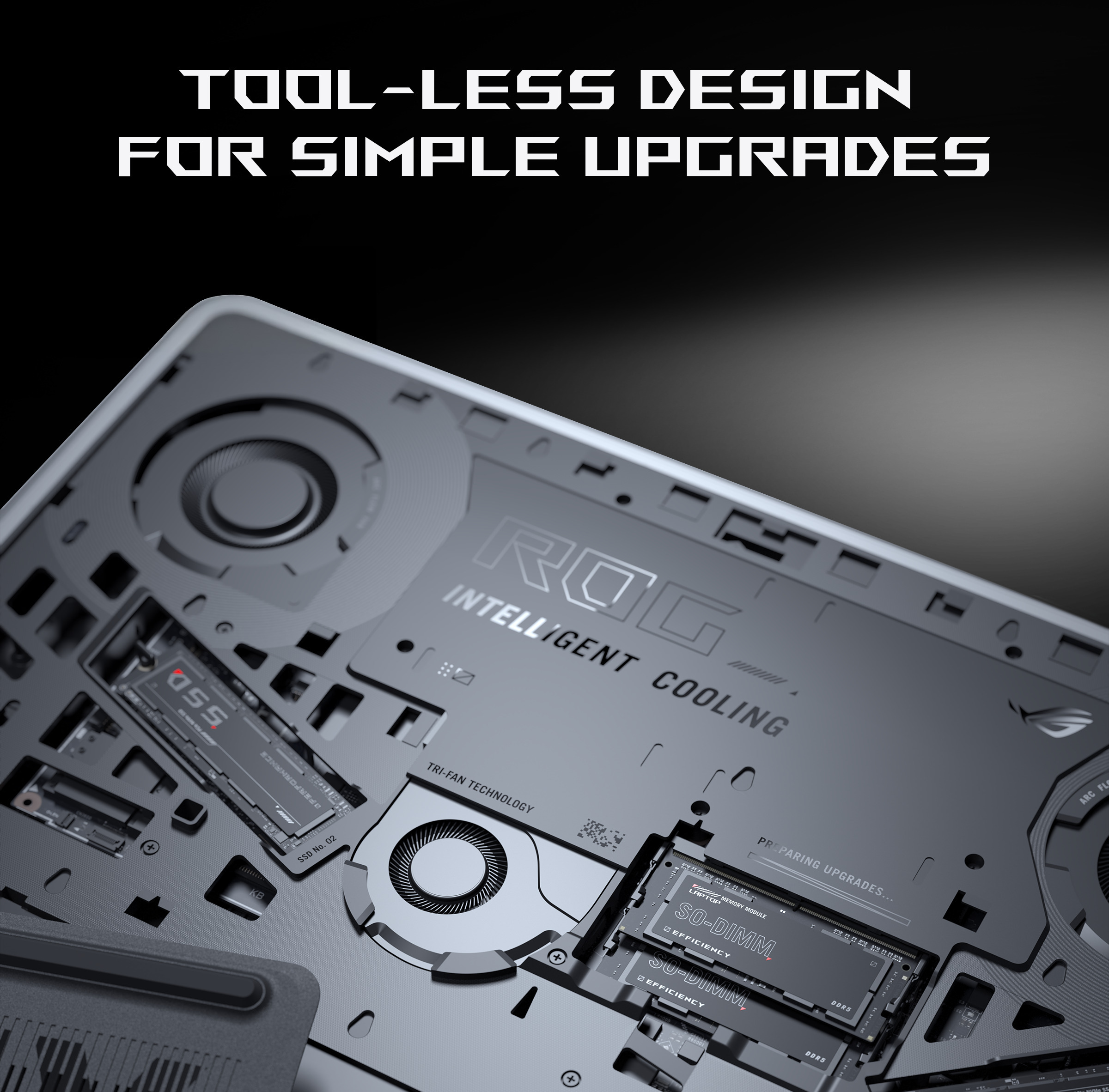 2025 Strix SCAR 18 on suunniteltu täysin uudelleen, jotta päivittäminen olisi entistä helpompaa. Työkaluton rakenne mahdollistaa helpon pääsyn sekä RAM-muistiin, SSD-asemaan että tuulettimiin, ja uusimman Q-latch-järjestelmän ansiosta SSD-paikkoja varten SSD-aseman ja RAM-muistin voi irrottaa ja vaihtaa muutamassa sekunnissa. Erityisesti suunniteltu kehys peittää loput emolevystä muiden komponenttien suojaamiseksi, mutta se voidaan helposti irrottaa muutamalla ruuvilla käyttäjille, jotka haluavat puuhastella lisää.