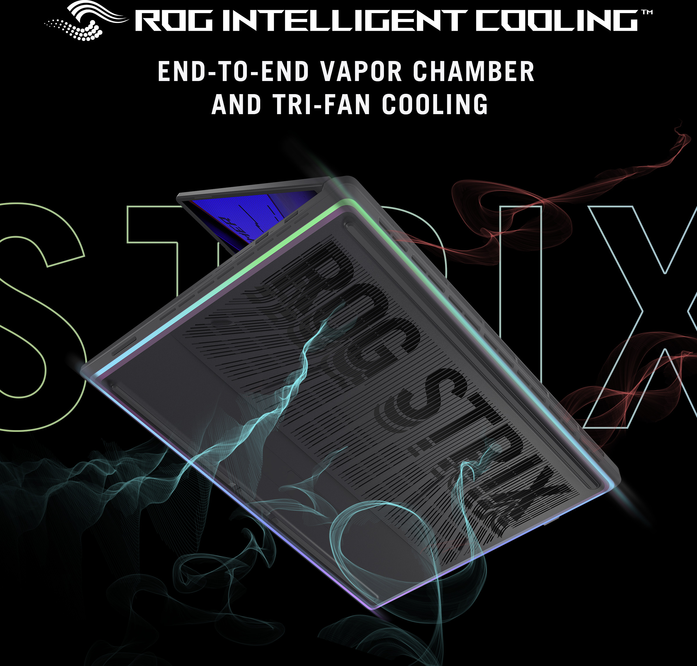 The cooling solution on the 2025 Strix G18 has been completely redesigned to give you the best gaming experience on your machine every time. The exhaust vents have been moved to the back, keeping warm air out of your mouse hand. The sides and bottom of the machine act as air intakes, creating a natural and efficient path for airflow. Air also flows through the keyboard lid, keeping your hands cooler during intense gaming sessions. Combining the end-to-end vapor chamber with a dual-sided heat sink, Tri-Fan technology and Conductonaut Extreme liquid metal in both the CPU and graphics card, the 2025 Strix G18 achieves lower noise levels in Turbo mode compared to the previous generation, while still delivering the same computational excellence you expect from a Strix machine.