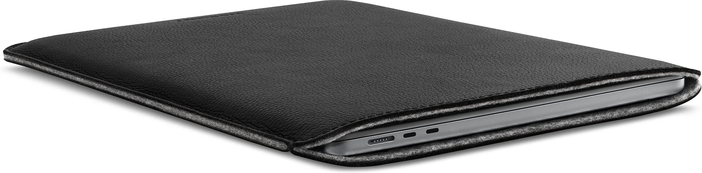 This slim protective case is tailored to ensure a perfect fit for your MacBook. The Swedish minimalist design keeps the overall size as small as possible. Made for maximum functionality, you'll be able to charge your laptop while it's in the sleeve, and when you're using the device, the sleeve also works great as a cushion underneath. The outer surface of the pocket is made of full-grain leather of Scandinavian origin and the inside is lined with 100% natural wool felt.