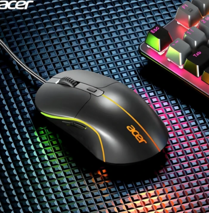The Acer M115 Gaming Wired Mouse is designed for gamers seeking high quality and functionality. It features an optical sensor with a maximum resolution of 3200 DPI, allowing precise sensitivity adjustment for different gaming scenarios. Main Features: Connection Type: Wired via USB interface. Sensor: Optical with a resolution of up to 3200 DPI, adjustable with a single button. Number of Buttons: 6, including side buttons and DPI switch button. Backlight: RGB with a breathing effect in 7 colors. Mouse Size: Medium. Cable Length: 1.5 meters. Material: Non-slip coating, preventing sweaty palms for comfort during long sessions. Compatibility: Windows and Mac OS.