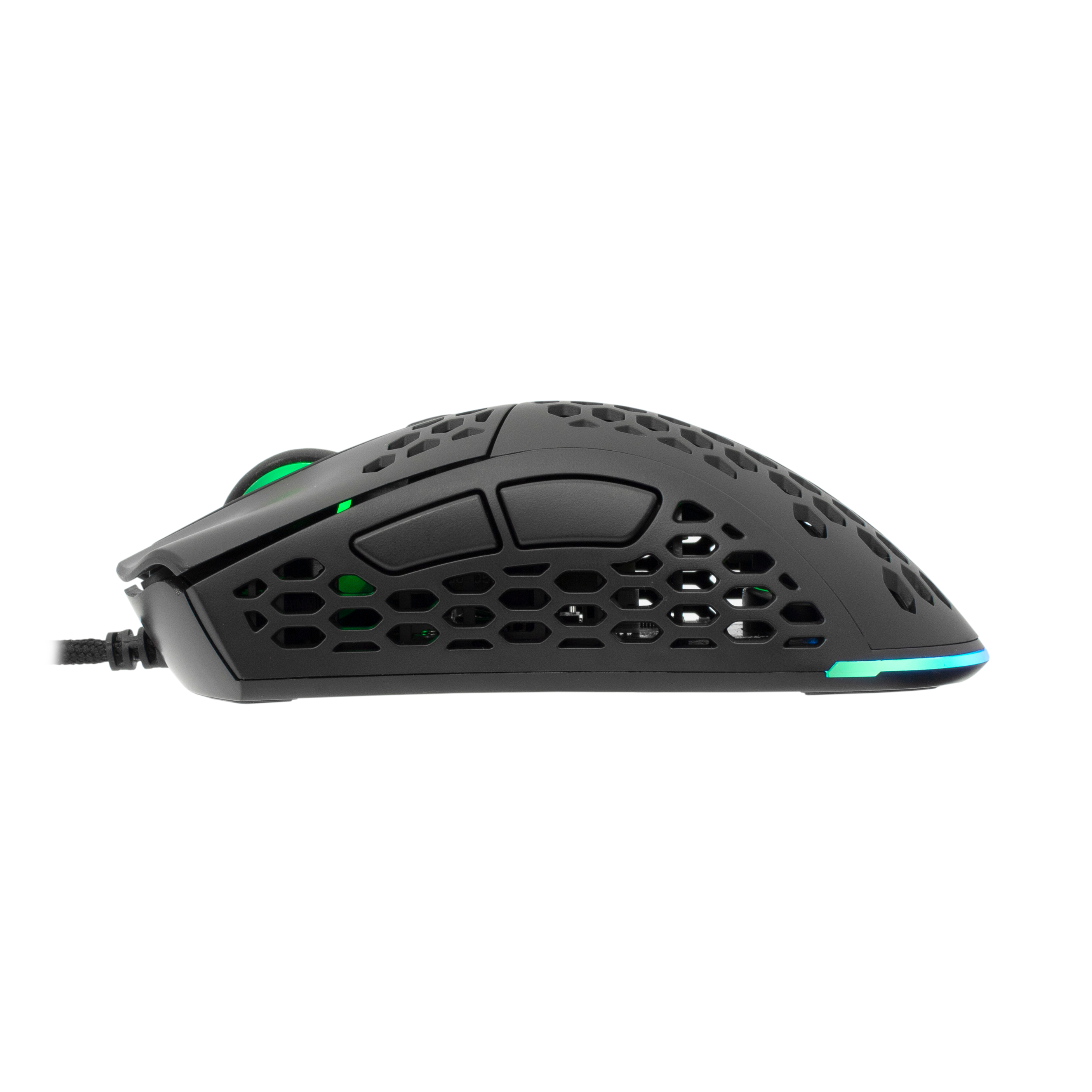 Specifications Type: 6D - buttons Sensor type: Optical Chipset: PWM 3370 + MCU 8948 + TTC encoder Resolution (DPI): 19000 Lifetime: 100 M - LK switches (L+R); 20 M Omron(side buttons) Polling rate (Hz): 1000 Acceleration: 50 G Illumination: RGB 16.8 M colors Software: Yes Bottom pads: PTFE Color: Black Material: Plastic Surface finish: Powder coating Interface: USB 2.0 Cable length (m): 1.8 Braided cable: Yes Dimensions (mm): 123x70.4x39.5 Mouse compatibility: Windows 7/8/10/MacOS
