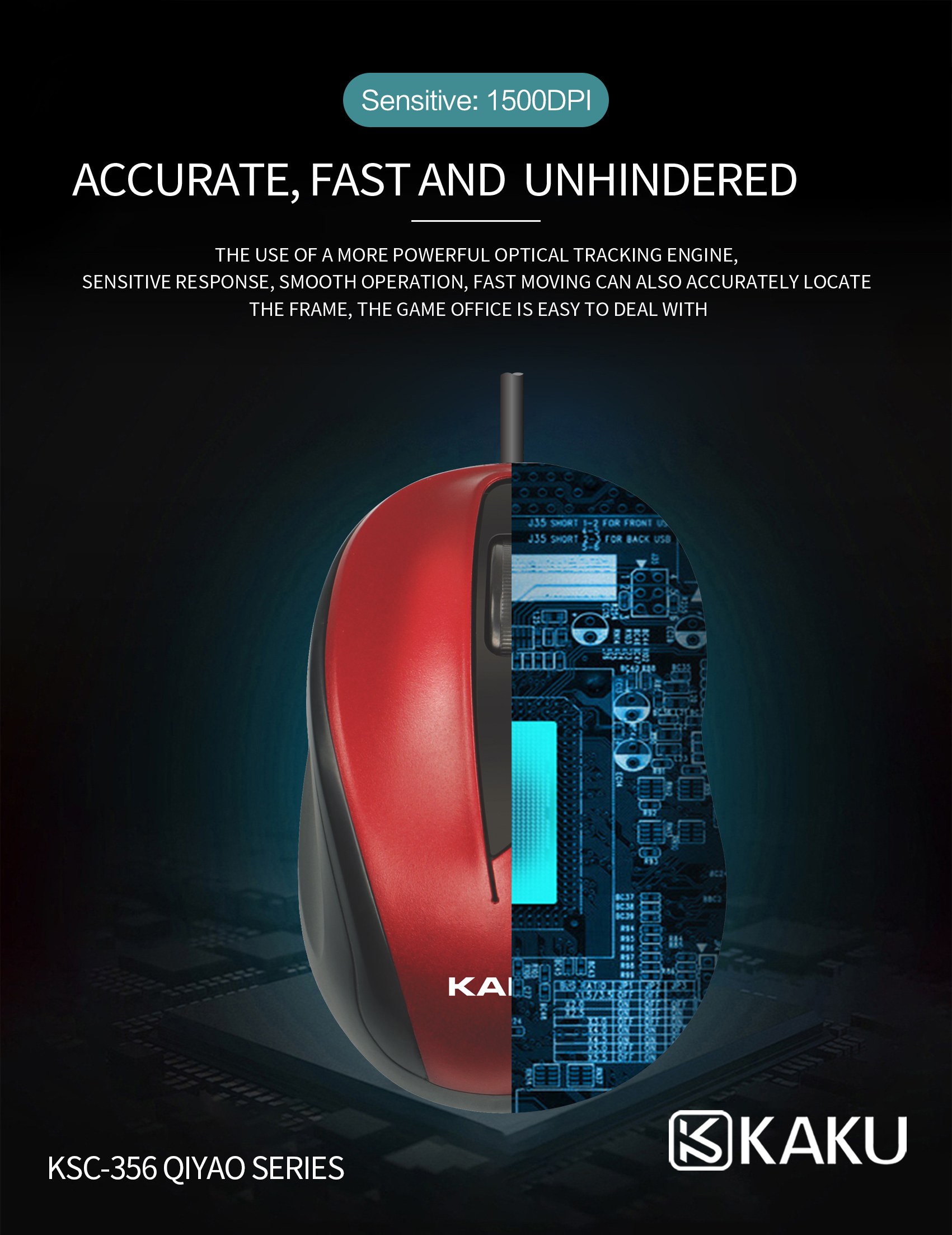 iKAKU KSC-356 3-Button Optical Computer Mouse 1500 DPI USB Red