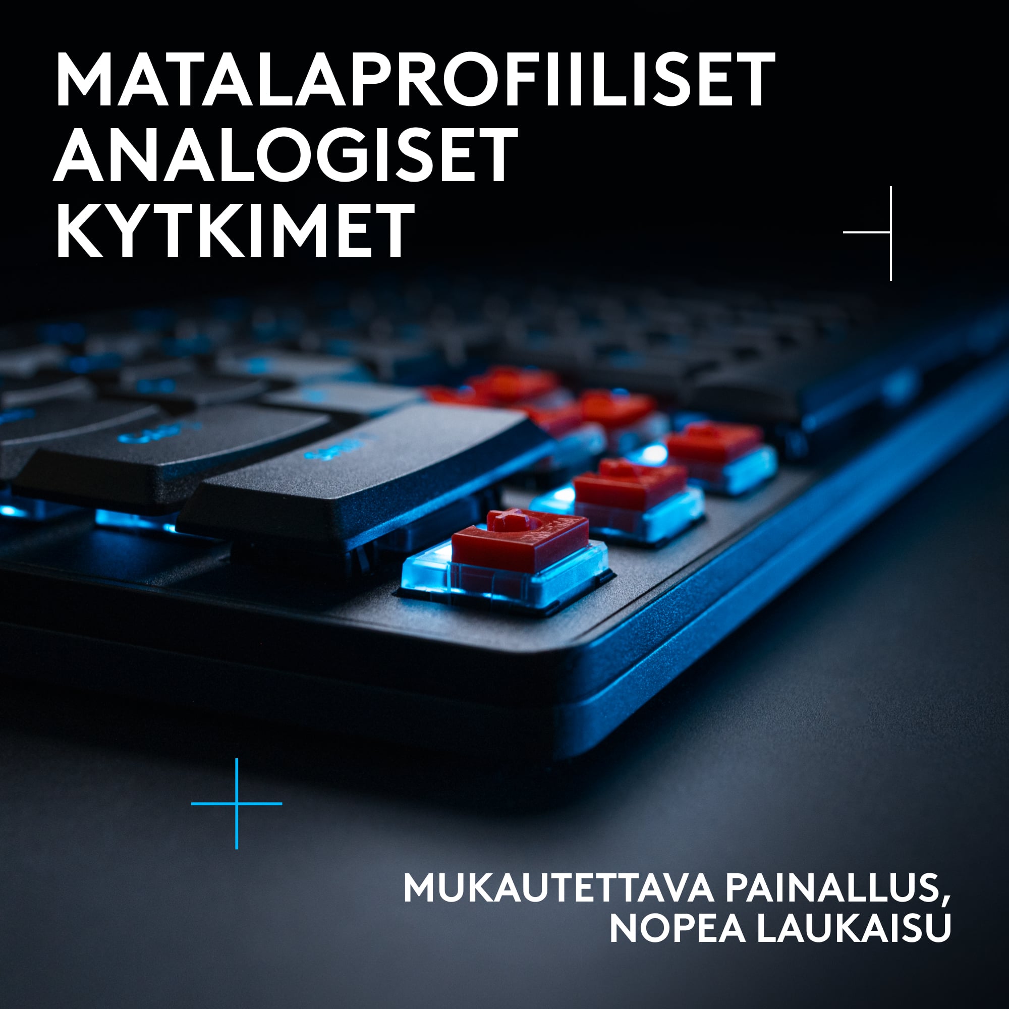 Tehases määritud lülitid, madala profiiliga, kahest plastikust kihist koosnev PBT-klahvikatted ja helisisenduse vähendav kihiline konstruktsioon tagavad sujuva tunde, kiired vajutused ja täpse tippimise vastupidavusest loobumata.