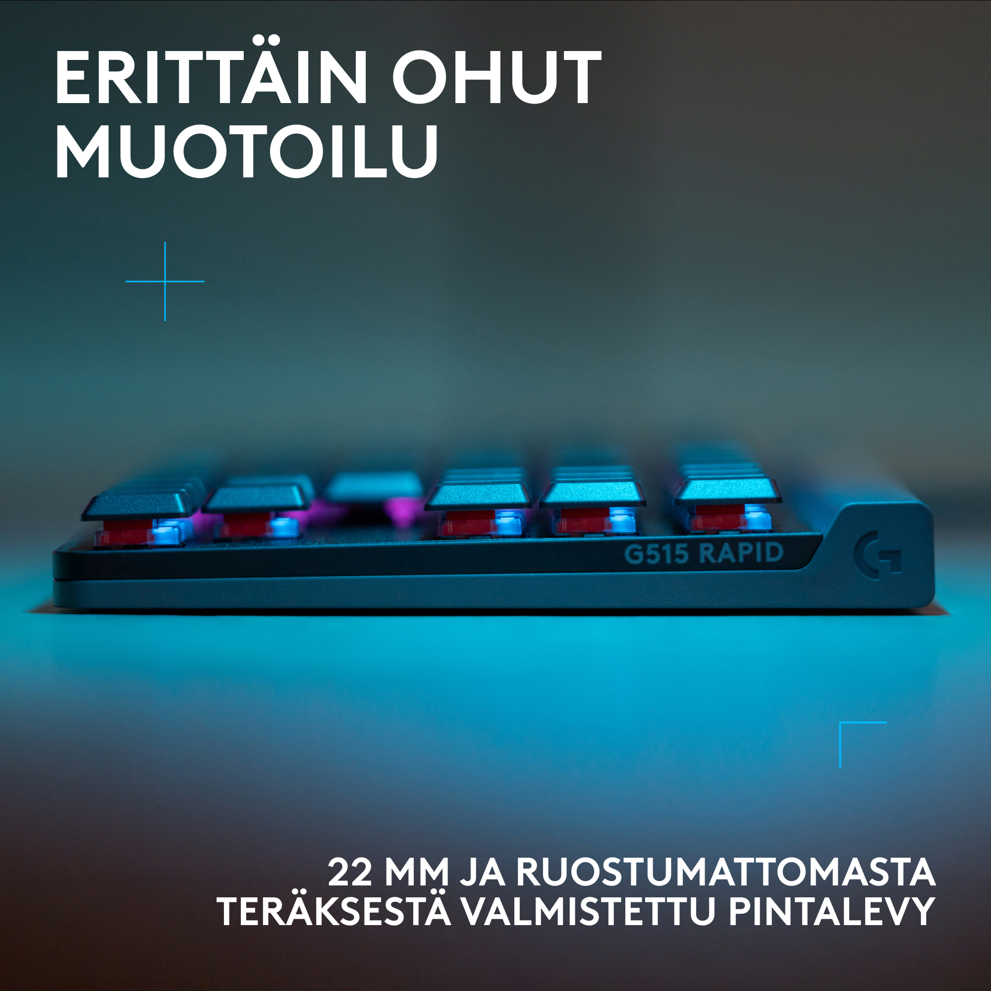 Logitech G515 Rapid TKL pakub kiirust, täpsust ja kohandatavust stiilse, madala profiiliga disainis ilma numbriklahvistuta. Klaviatuuris on magnetilised mehaanilised lülitid, kahest plastikust kihist koosnev PBT-klahvikatted, helisisenduse vähendav konstruktsioon ja LIGHTSYNC-RGB-valgustus.