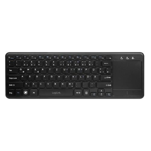 The 2.4 GHz wireless keyboard with touchpad from LogiLink has a range of up to 10m and is therefore particularly suitable for using it with a Smart TV. Simply connect via USB dongle and enjoy the full variety. After 10 minutes of inactivity, the keyboard automatically switches to sleep mode, saving energy.LogiLink ID0188. Keyboard form factor: Mini. Keyboard style: Straight. Connectivity technology: Wireless, Device interface: RF Wireless, Keyboard layout: QWERTZ, Recommended usage: Home. Product colour: Black