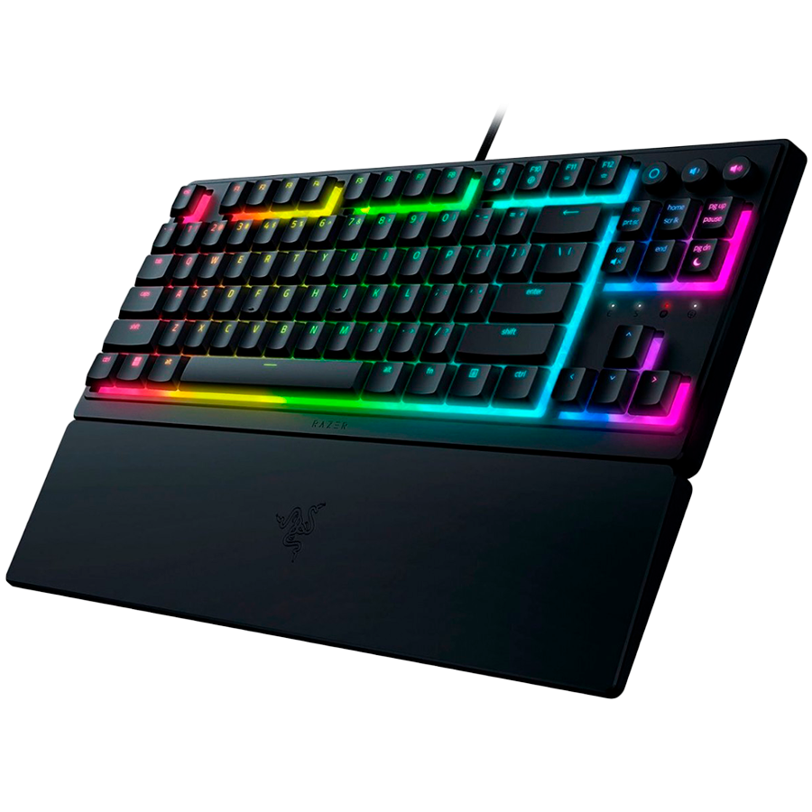 Razer Ornata V3 Tenkeyless, madalprofiilne mänguklaviatuur, US-klaviatuurilahendus, 8 Chroma™ RGB valgustuspiirkonda, eraldi meediaklahvid, UV-kattega ABS-klahvikatted, 1000 Hz ultrapolling, vastupidav prillikindluse disain, punutud fiiberkaabel (RZ03-04880100-R3M1)