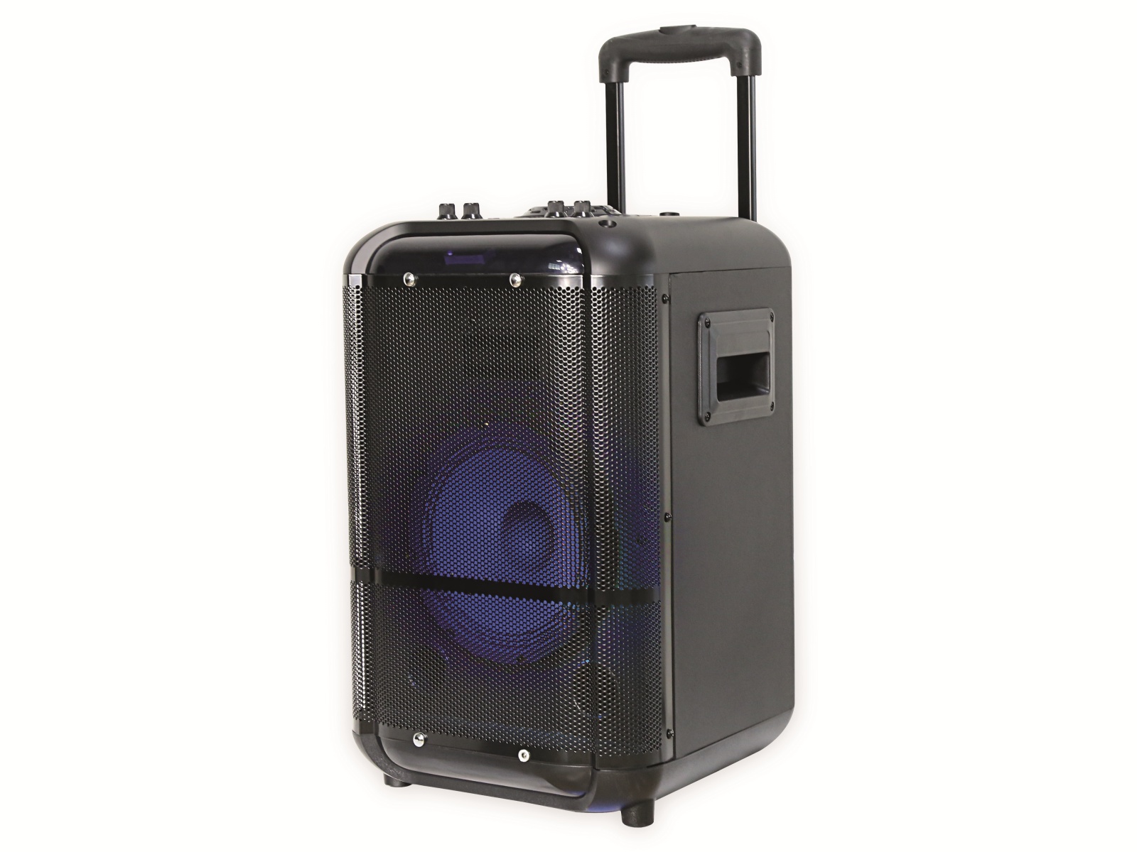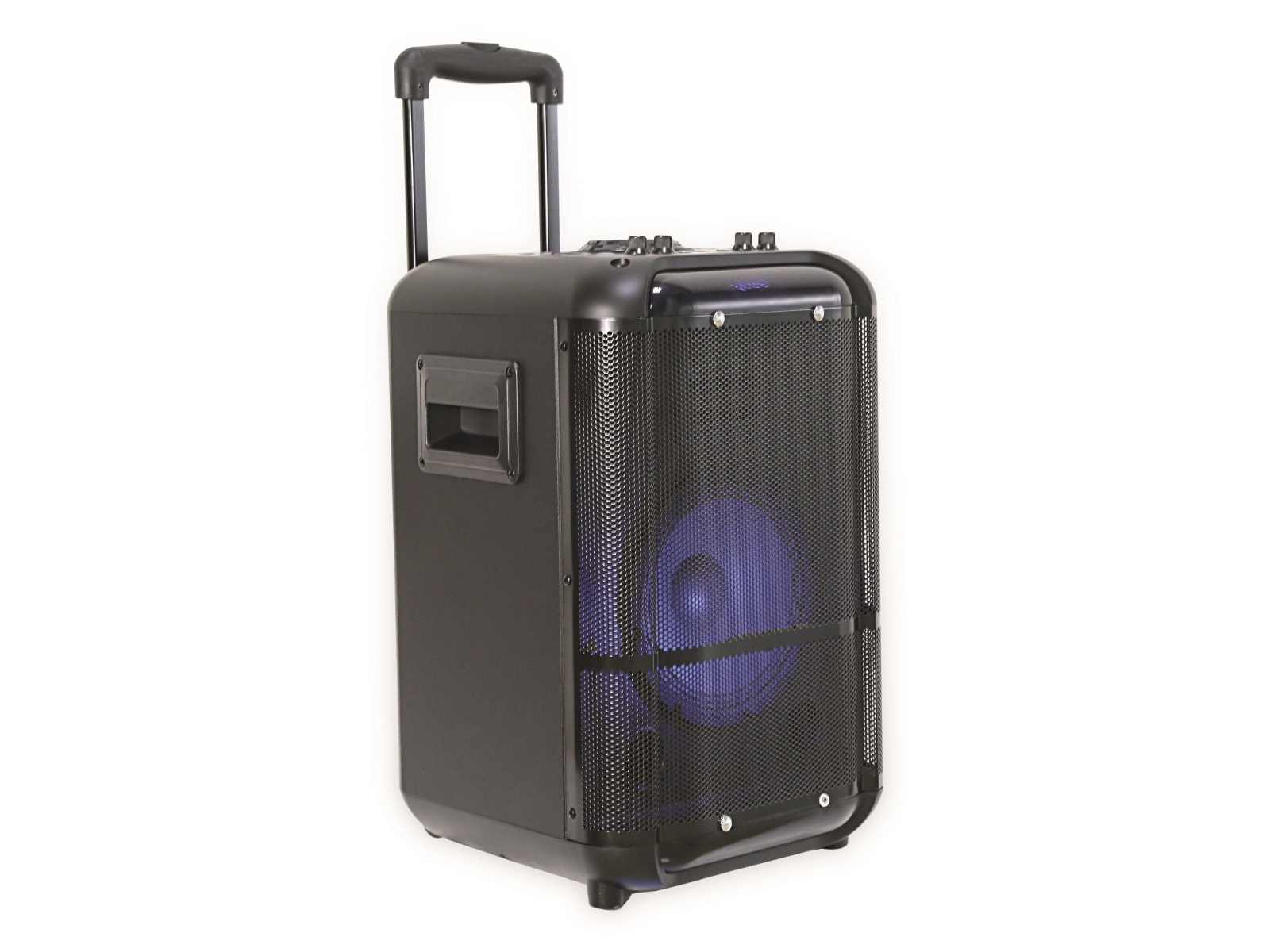 8'' Bluetooth trolley speaker with rechargeable battery & LED light on front Bluetooth, USB & MicroSD input for MP3 music playback & 3.5mm AUX input PLL FM radio with auto scan Mic input USB (1A) for charge smartphone etc LED display LED light for illumination at night Power Output: 20W RMS 7,4V 1800mAh rechargeable lithium battery inside Works both with built-in battery and with AC/DC 230V connection Speaker size: 8" + 3” tweeter, with metal speaker grill Trolley handle built-in AC/DC 100-240V/9V adaptor for charging included Wired microphone included Product size: 34.00(w) x 35.00(d) x 52.00(h) cm Gross weight: 10.45 kg Package size: 38.00(w) x 38.50(d) x 61.00(h) cm