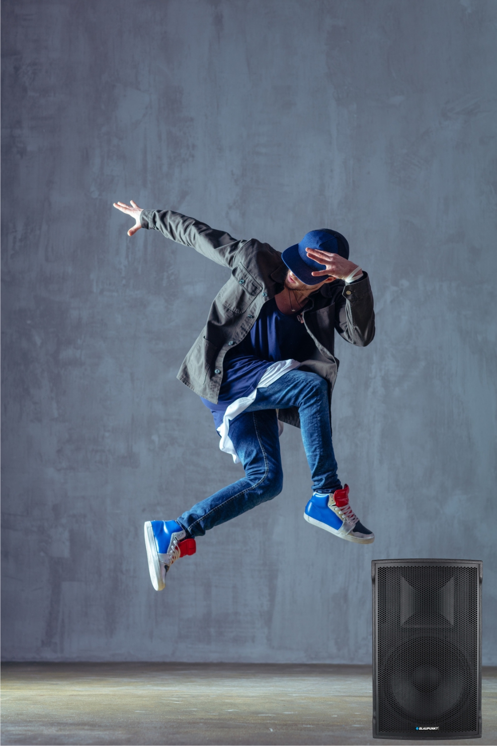 • Bluetooth for audio streaming profile (A2DP) • USB player (up to 32 GB) • MP3 / WMA playback • Bass / treble adjustment • Microphone input with echo control • AUX inputs (XLR, RCA, 6.5 Jack) • 2 channel class D amplifier • RMS power: 600 Watt • Maximum sound pressure level SPL - 125 dB • Wooden bass-reflex enclosure • Frequency response: 45 Hz - 20 kHz • 1.76” titanium tweeter with a compression chamber • 15” woofer with paper cone • Impedance: 8 Ohms • Power supply: AC 220 - 240 V ~ 50/60 Hz • Dimensions: 440 (W) x 720 (H) x 490 (D) mm • Weight: 28.33 kg