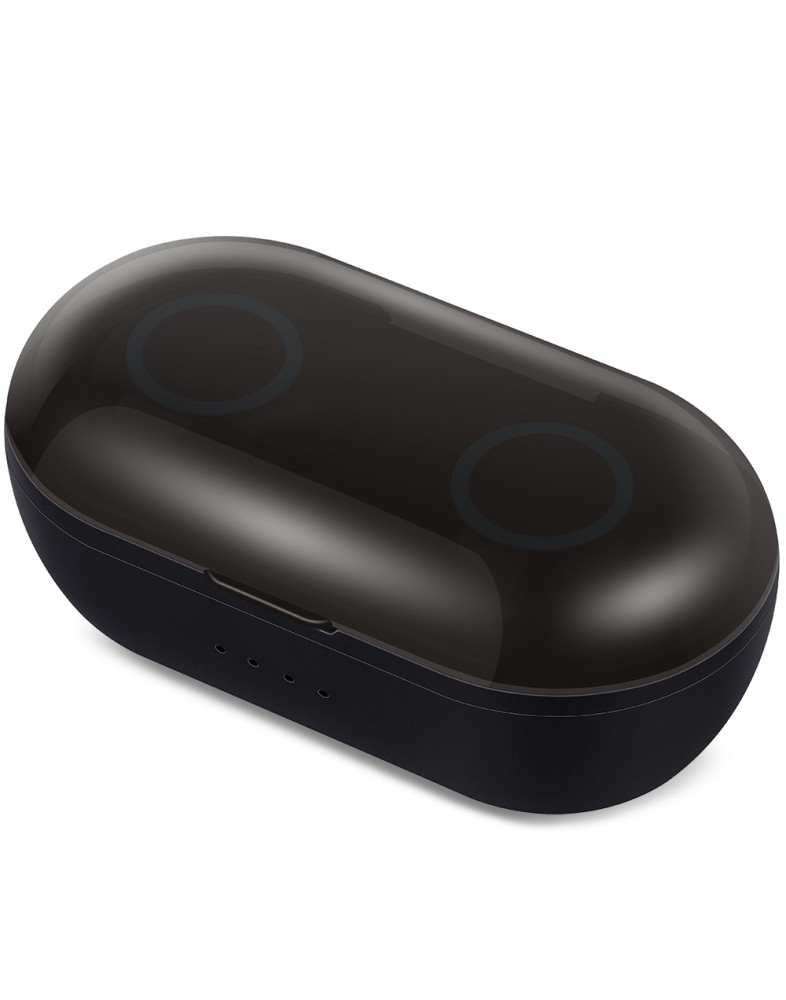 Specification: Earbuds battery: 50 mAh rechargeable battery Battery box: 300mAh Working distance: 10 M Standby time: 40 hours Playing time: around 6 hours Dimension of earbuds: 23*23*17mm, N.W: 10g Charging box: 70*40*30mm, N.W: 45g Support: HFP, HSP, A2DP, AVRCP and SPP Compatibility: iphone, Android phone and most Bluetooth device Function: Handsfree call, Auto paring, DSP Deep noise reduction, Charge case charge for smartphone and Earphone