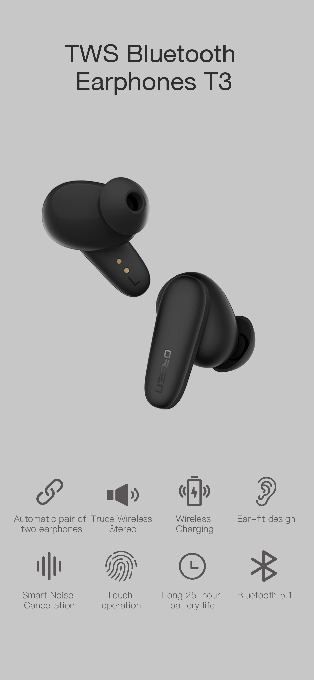 Orsen T3 Bluetooth-kõrvaklapid mustad