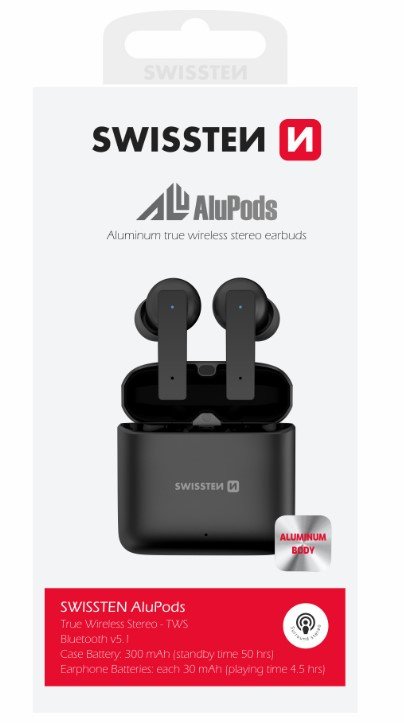 Kuni 4,5h muusika kuulamisaega annab teile SWISSTEN ALUPODS PRO kõrvaklapid.