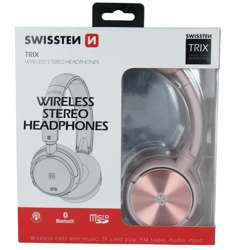 Elegantsed kvaliteetse heliga bluetooth kõrvaklapid. Kõrvaklappidel on FM-tuuner raadio kuulamiseks, 3,5 mm pesaga AUX helisisend, kuni 32 GB suurune microSD-kaardi pesa, käed-vabad mikrofon ja pööratavad kõrvaklapid mugavamaks muusika kuulamiseks. Pakendatud Swissteni blisterpakendisse.