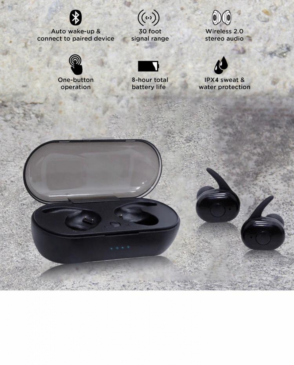 Bluetooth version: V5.0 Frequency response: 20Hz - 20 KHz Impedance (Ohm): 32.0 Receiver distance: up to 10 meters Built-in rechargeable battery: 55mAh (Charging box: 300mAH) Music listening / talk time: up to 4 hours Features: Bluetooth, call making, responsive microphone, easy to charge via USB port Color: Black with red