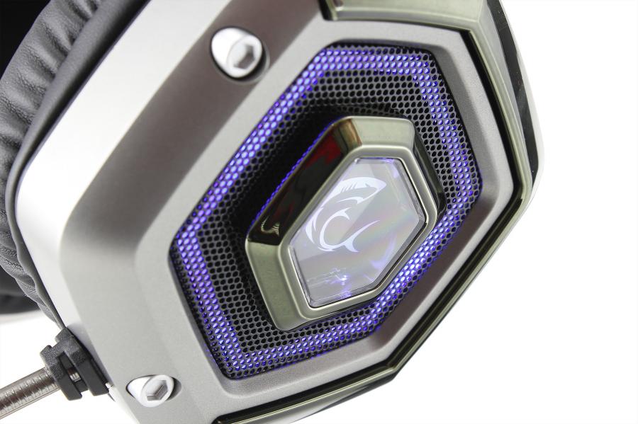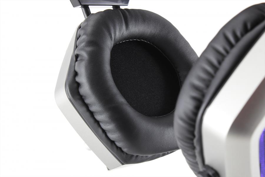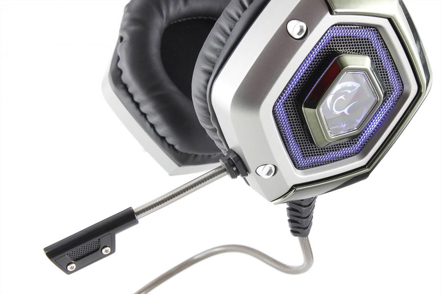Gaming headphones with microphone Mute button USB Hub Microphone sensitivity: -48 dB ± 3dB Mic impedance: 2200 Ohm Orientation: Multidirectional Mic dimension: 6mm x 2.7mm Sensitivity: 102 dB ± 3dB Impedance: 32 Ohm Frequency range: 20Hz - 20kHz Speaker size: 50mm Type: Gaming headphones Interface: USB 2.0 Lighting: Blue Braided cable Cable length: 2,2m Material: Plastic / Artificial leather Color: Black/Silver