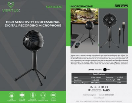 Vertux Sfääri Professional digitaalne mikrofon PC / PS4 / PS5 (MICSPHERE)