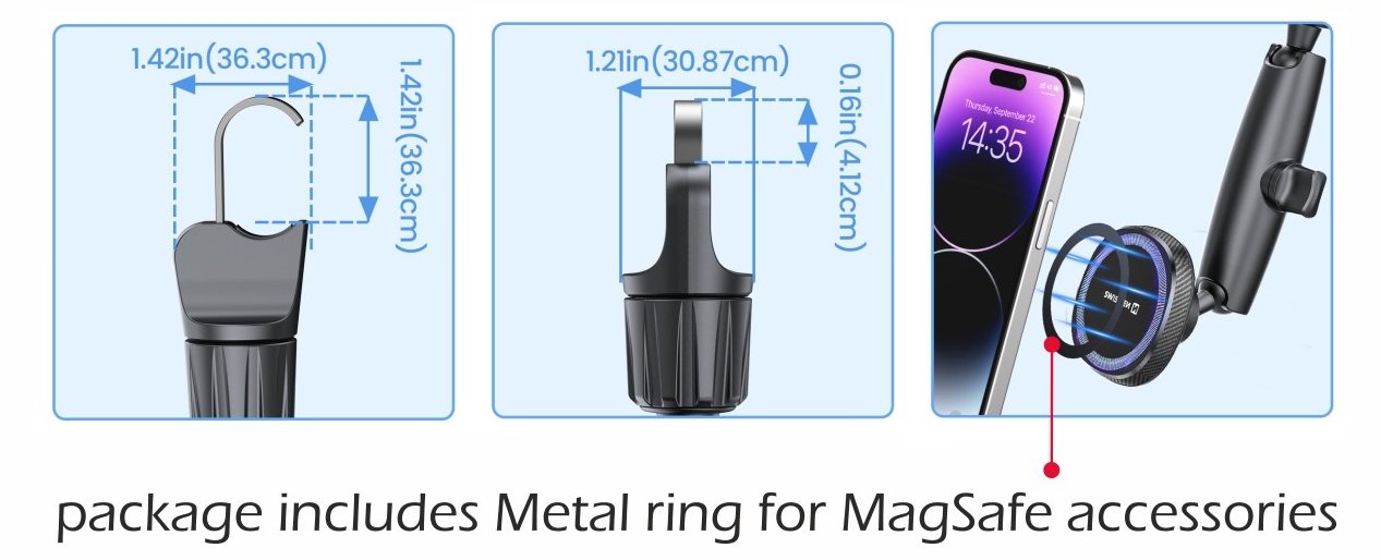 Tänu Magsafe tehnoloogiale kinnituvad nutitelefonid Iphone 13 ja uuemad ideaalselt hoidiku külge. Teiste nutitelefonide (ja muude kaubamärkide) jaoks on kaasas kleepuv rõngas, mis kleepub nutitelefoni või ümbrise tagaküljele.