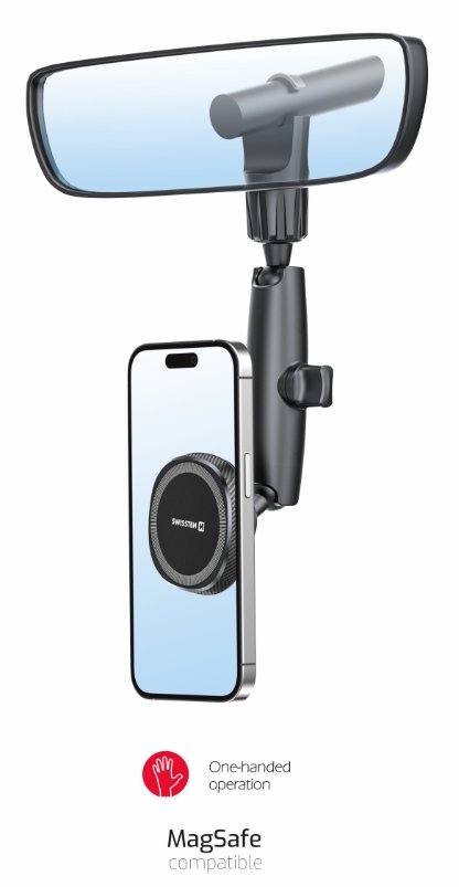 Magsafe'iga ühilduva kinnitustehnoloogiaga SWISSTENi hoidik tahavaatepeeglile kinnitamiseks. Pakendatud SWISSTEN jaemüügipakendisse.